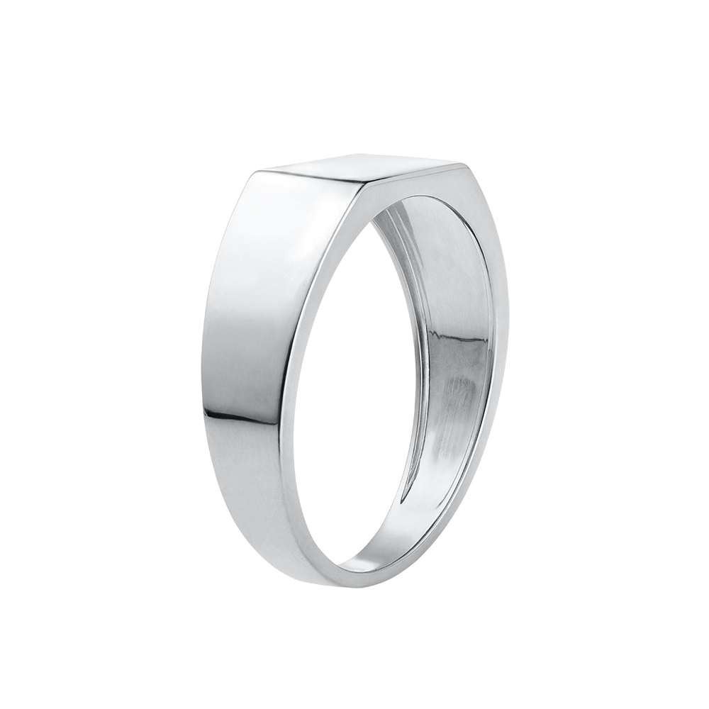 Un Anillo de Sello todo de oro blanco con una bandeja rectangular. Una joya sencilla y elegante al mismo tiempo.