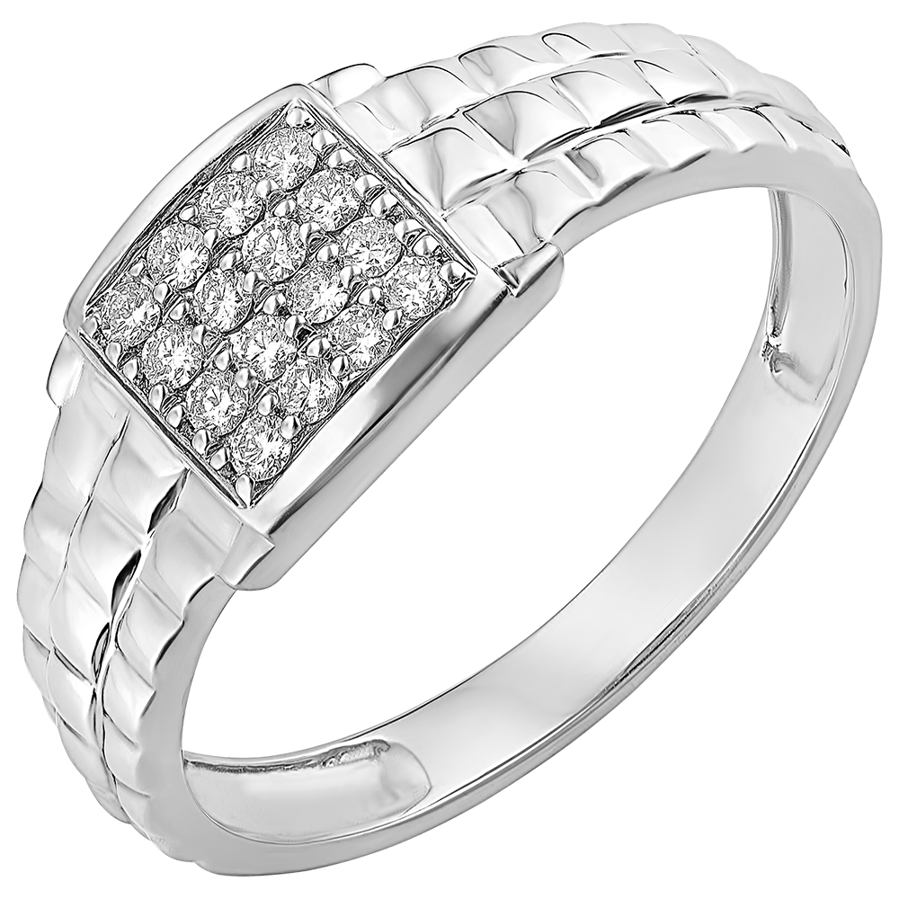 Un Anillo de Sello tejido de oro blanco cuyo centro se encuentra cubierto por 16 diamantes.…