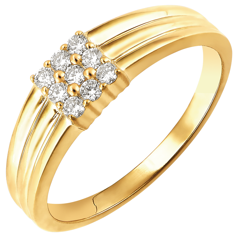 Un anillo de oro amarillo, delicadamente trabajado, cubierto por 9 diamantes.