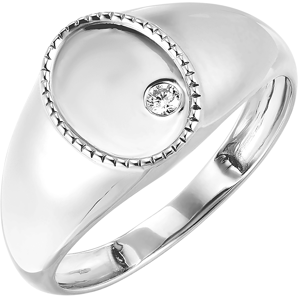 Un diamante blanco de 0,02 quilates y calidad H SI está engastado en el borde delicadamente trabajado, aportando un brillo sutil.