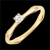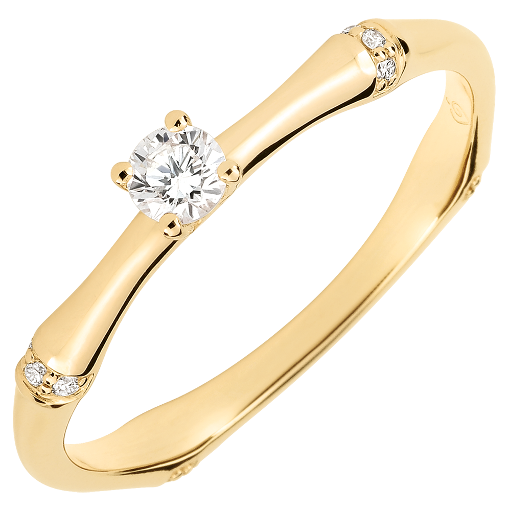 Una rama de bambú flexible y sólida se convierte en un anillo de compromiso eterno. Los nodos de bambú están incrustados de diamantes en el oro amarillo para resaltar el diamante solitario.