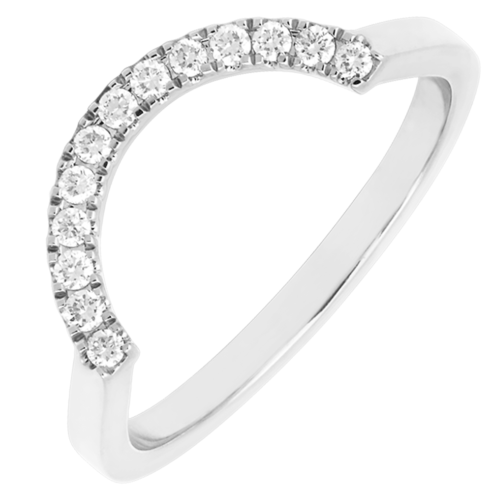 La Alianza Contour con diamantes aporta un toque de brillo adicional al trío Romance Moderne. Fabricada en oro pulido, su curva delicada se ilumina con un pavé de diamantes brillantes que realza con sutileza la forma del anillo central. Llevada sola o combinada con la Alianza Contour y el Anillo Cabochon Aura Nacrée, revela toda la riqueza de un estilo moderno y sofisticado.