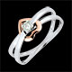 Un corazón de oro rosa en equilibrio entre dos anillos de oro blanco es superado por un diamante encerrado por oro blanco.