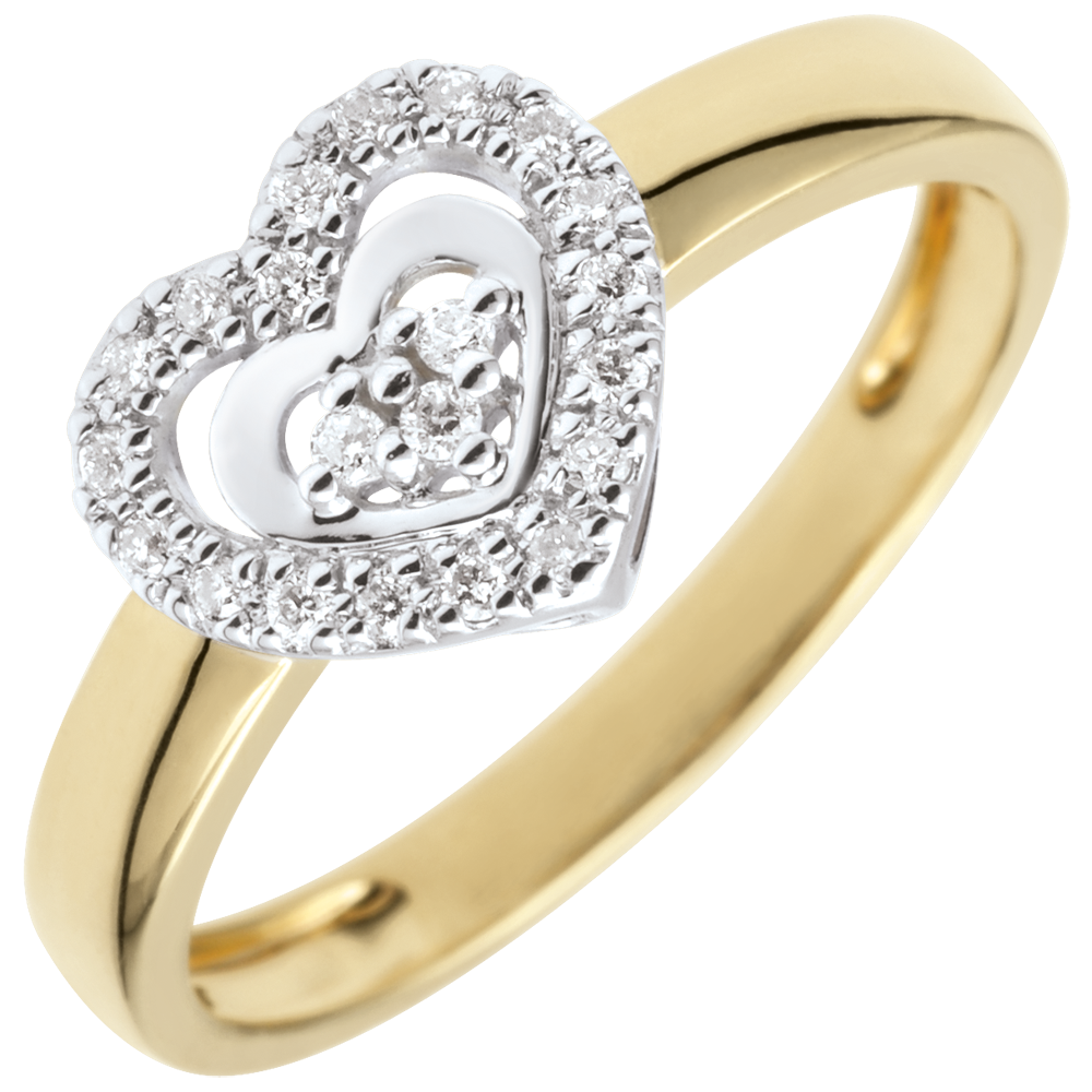 Anillo Corazón Paris - Dos Oros - oro amarillo y oro blanco 9 quilates