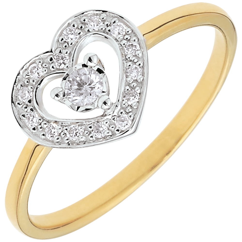 PRECIOSO SECRETO N.º 12Anillo Corazón - Oro blanco y Oro amarillo 18 quilates - Diamante ID : 2711