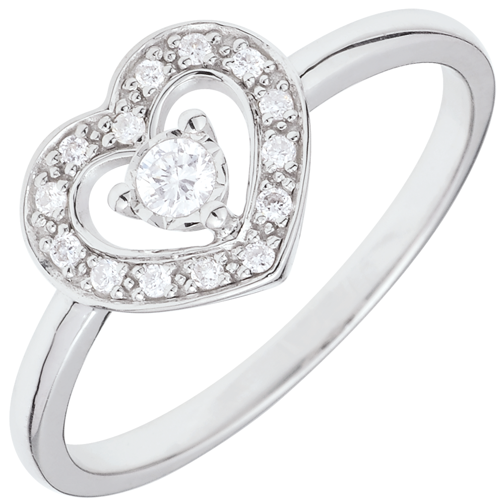 PRECIOSO SECRETO N.º 12Anillo Corazón - Oro blanco 9 quilates - Diamante ID : 2712
