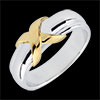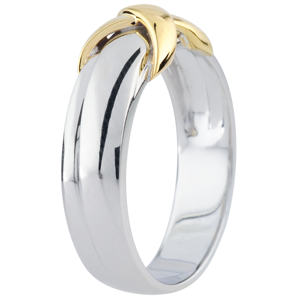 Un Anillo ancho y voluminoso unido por un nudo de oro amarillo.