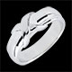 Un anillo ancho y voluminoso unido por un nudo de oro blanco.