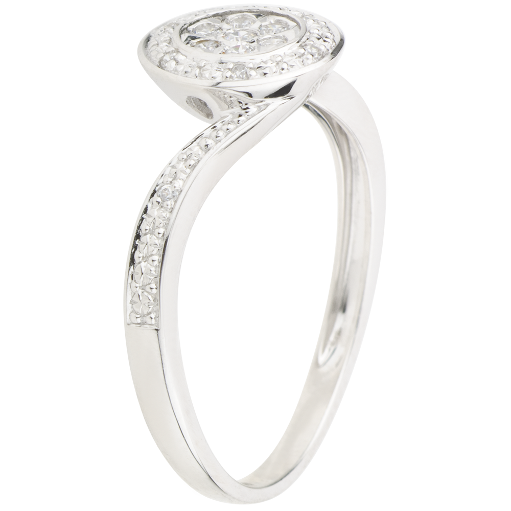 15 diamantes: 0.11 quilates - Oro blanco (18 quilates= 750/-): 2.5 g.