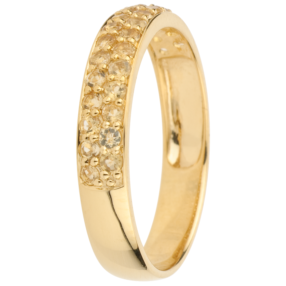 Anillo Aves del Paraíso - dos filas - oro amarillo 9 quilates y citrina amarilla