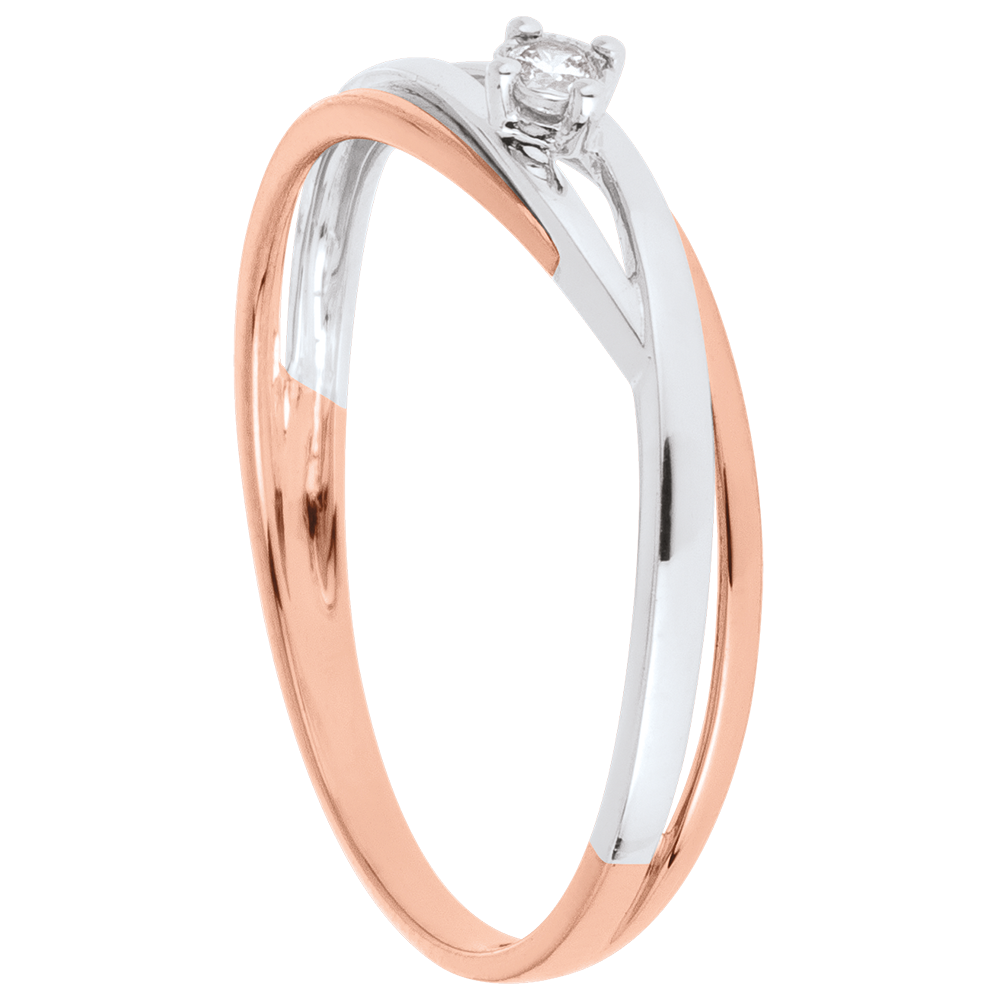 Esta joya combina con maestría la modernidad del oro blanco con la calidez del oro rosa, creando un dúo de oros que realza el brillo del diamante.