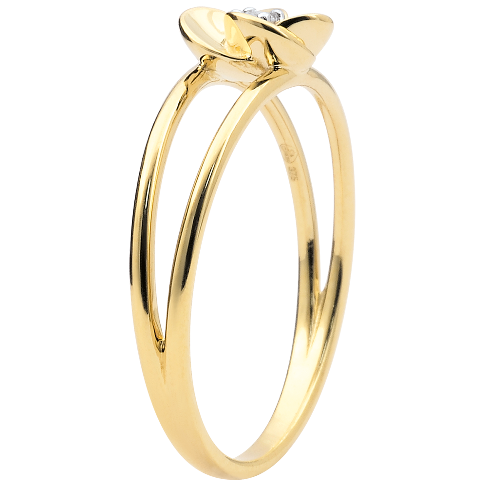 Este anillo está fabricado en oro amarillo 9 quilates, conocido por su durabilidad y tono cálido.
