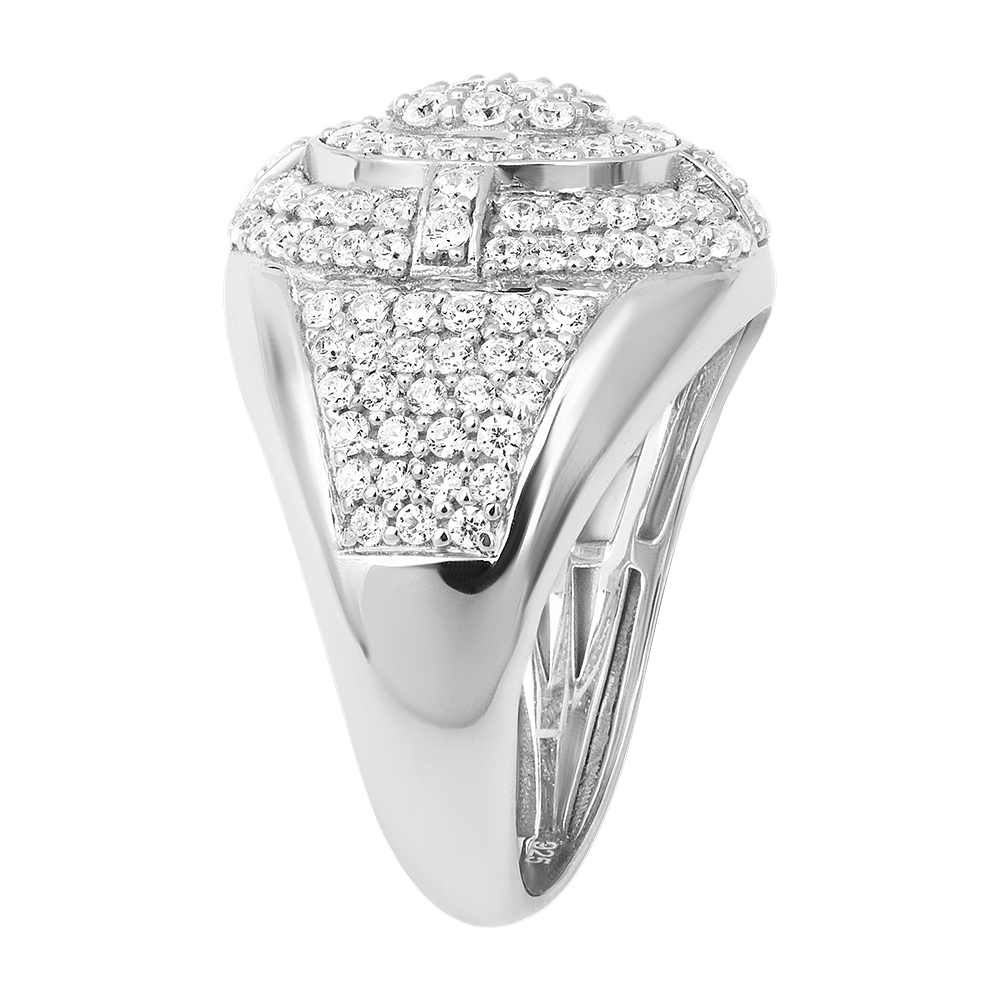 Fabricado en oro blanco de 18 quilates, este anillo ancho combina brillo y refinamiento para una pieza atemporal.