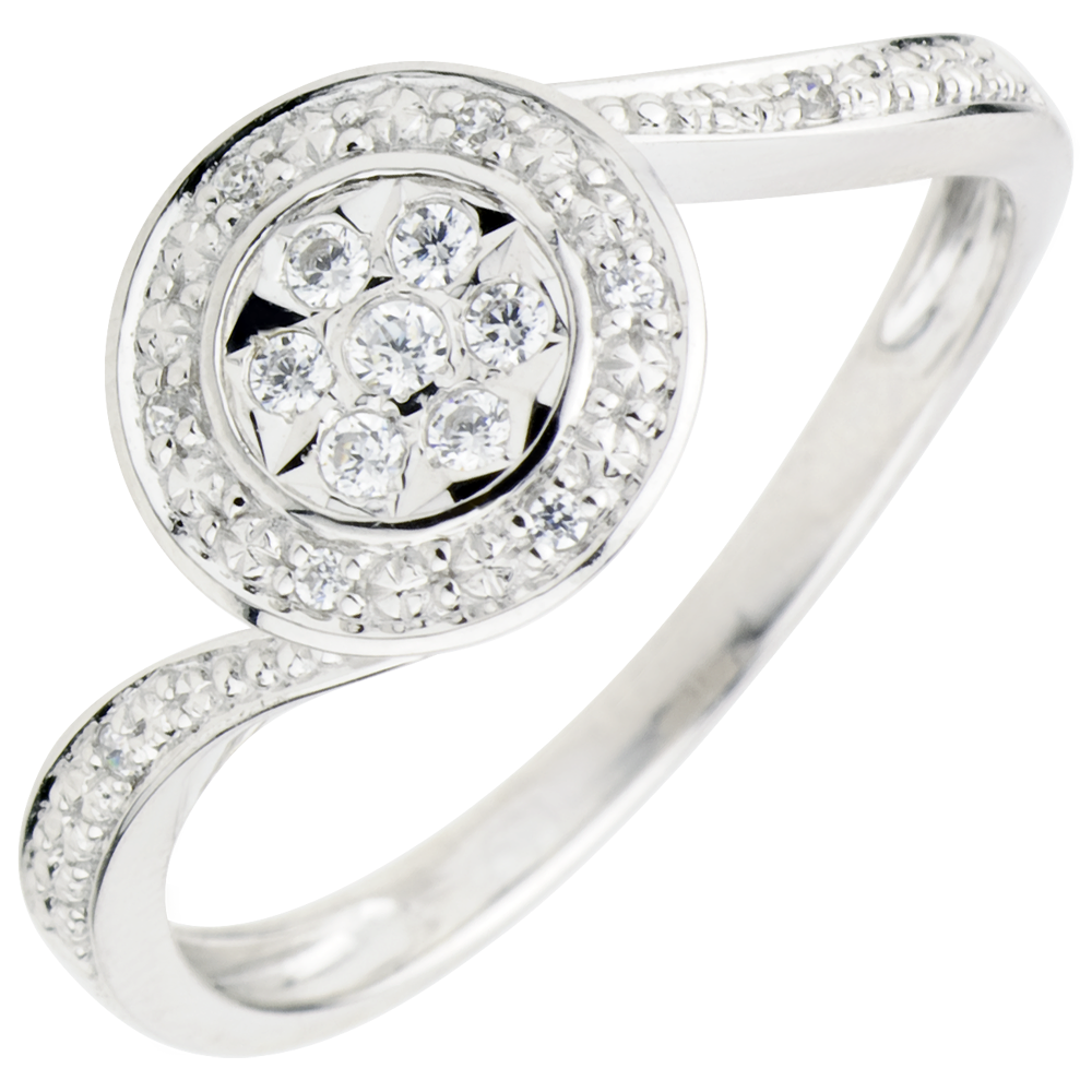 15 diamantes: 0.11 quilates - Oro blanco (9 quilates= 375/1000): 1.9 g.