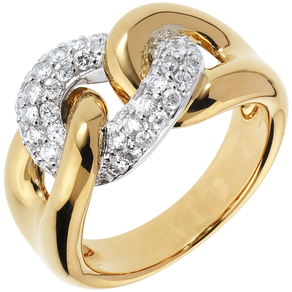 Un amor en diamantes entrelazado por dos brazos de oro amarillo