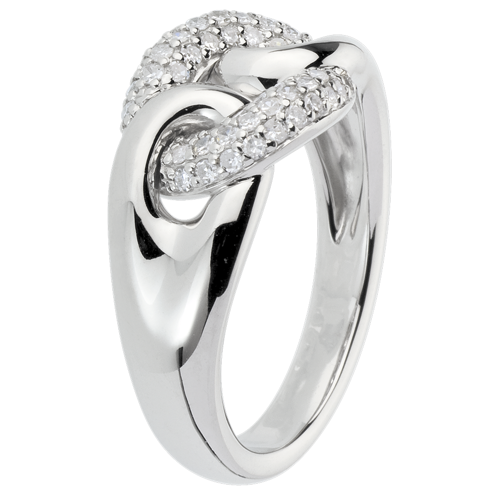 Un amor en diamantes entrelazado por dos brazos de oro blanco