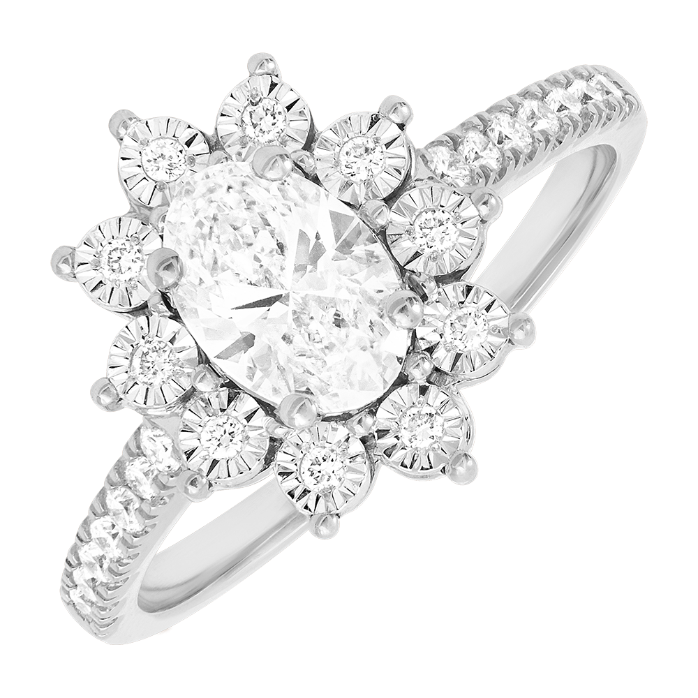 EDELWEISS ETERNA N.º 4Anillo Flores - Oro blanco 9 quilates - Diamante de laboratorio ID : 1607