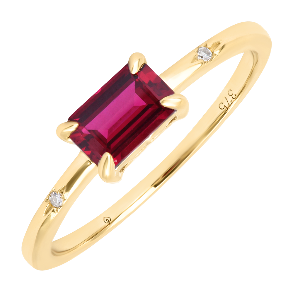 Anillo Flambois – Oro amarillo de 9 quilates, rubí sintético y diamantes sintéticos