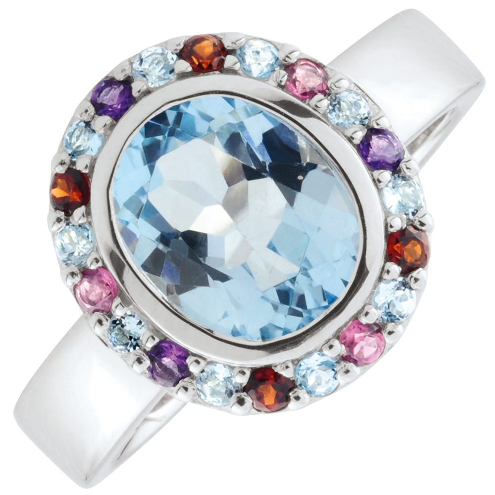 PASEO SOñADO N.º 18Anillo - Plata maciza - Amatista, Turmalina rosa, Granate, Topacio azul ID : 6298 5