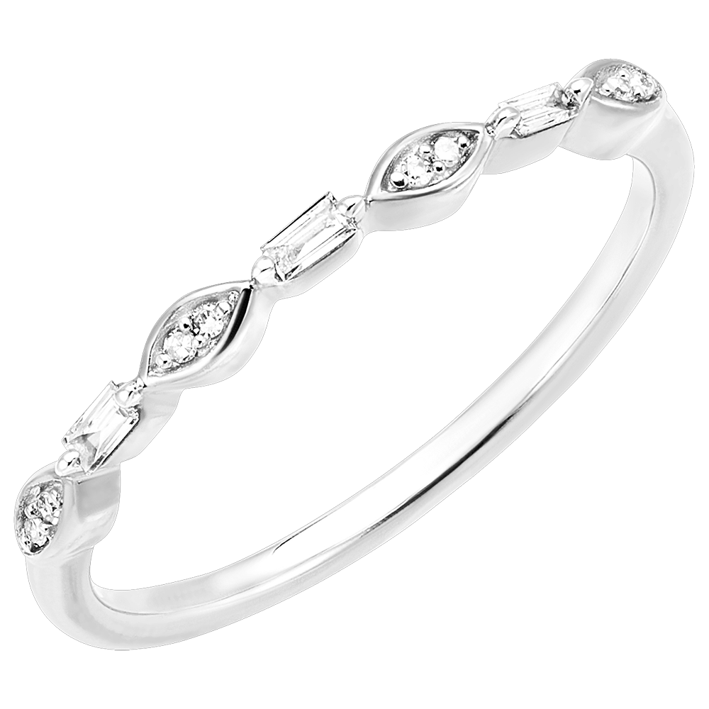 Este anillo de oro blanco está engastado alternativamente con diamantes de talla esmeralda y diamantes redondos en forma de marquesa - evocando una cascada centelleante de luz.