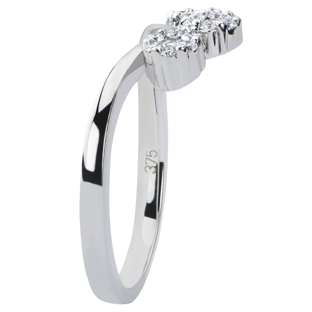 Una montura ligera y femenina, adornada con tres pompones de diamantes.