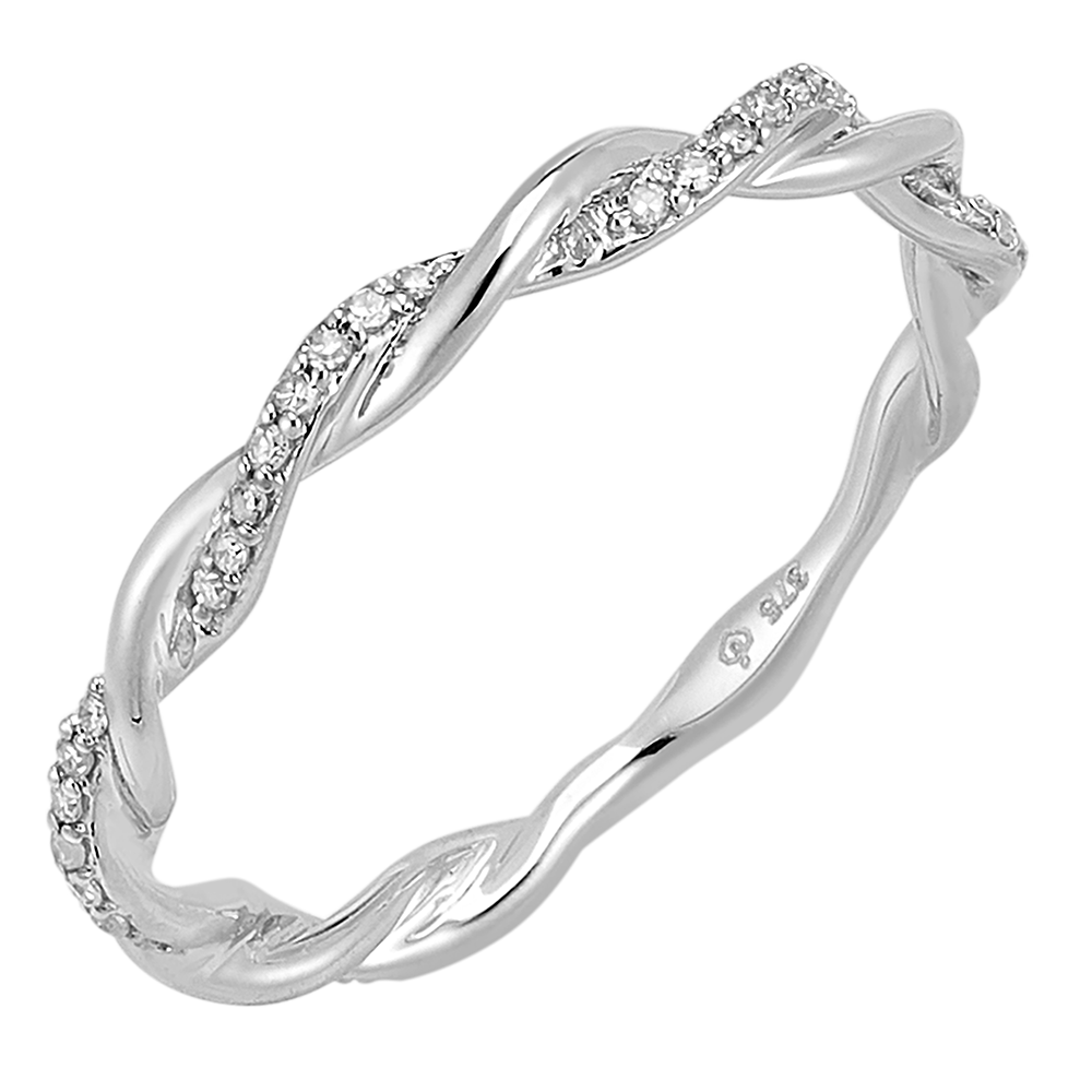 Un anillo en el que se entrelazan dos hilos de oro, oro blanco y oro blanco con diamantes, como un abrazo eterno.