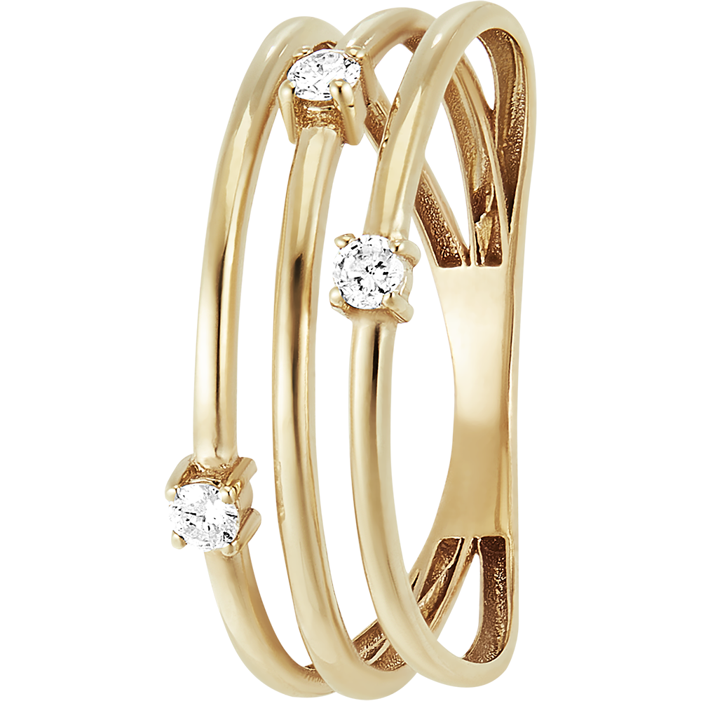 Un anillo compuesto por 3 bandas de oro amarillo y adornado con 3 diamantes delicadamente engastados. Delicadeza y brillo para este modelo perfecto para llevar a diario.