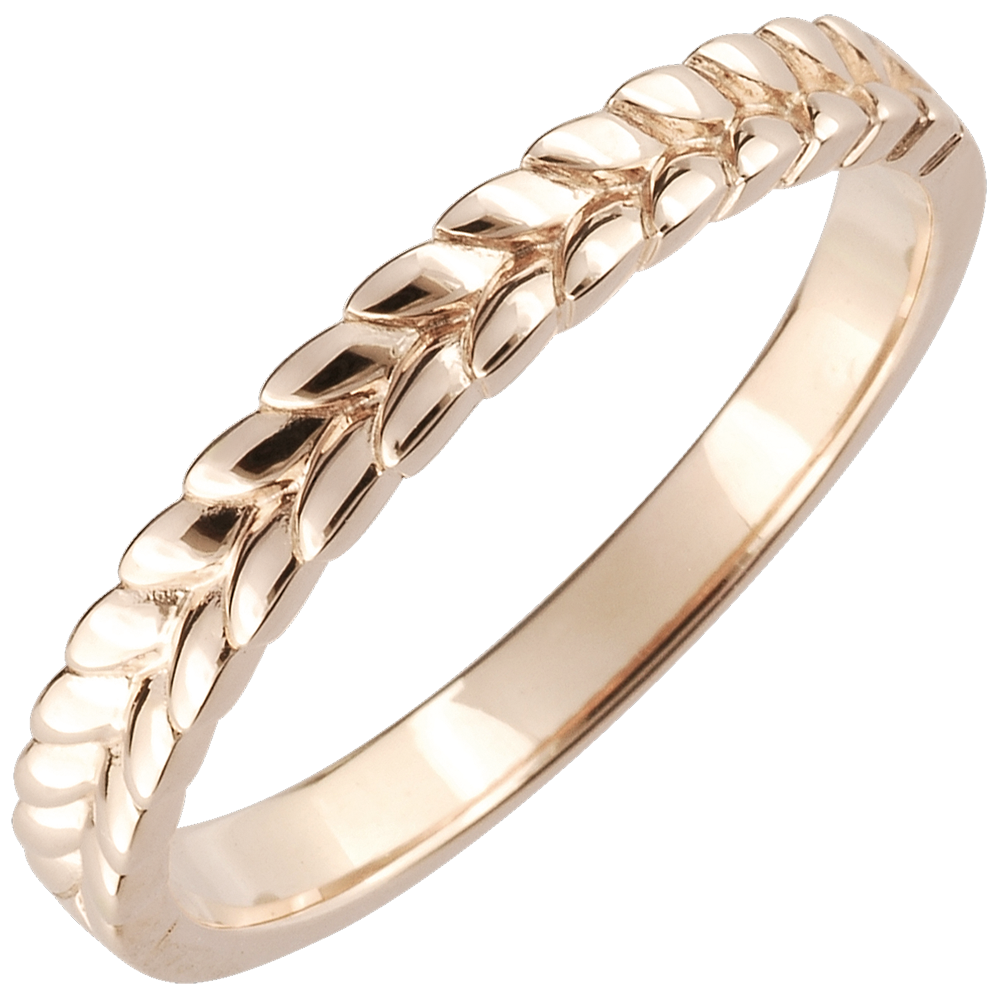 Un aro compuesto de hojas de oro entrelazadas sobre la mitad del anillo. Perfecto como alianza original y refinada, o un anillo que puede combinar con otras sortijas.