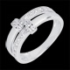 Dos anillos de oro mediados blanco cintas mediados adoquines son unidos por un lazo de oro blanco solado por brillantes.