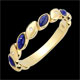 Un anillo de matrimonio moderno en oro amarillo en donde se alternan con refinamiento navettes en Lapis Lazulis y diamantes. Este anillo también puede lucirse como un anillo excepcional.