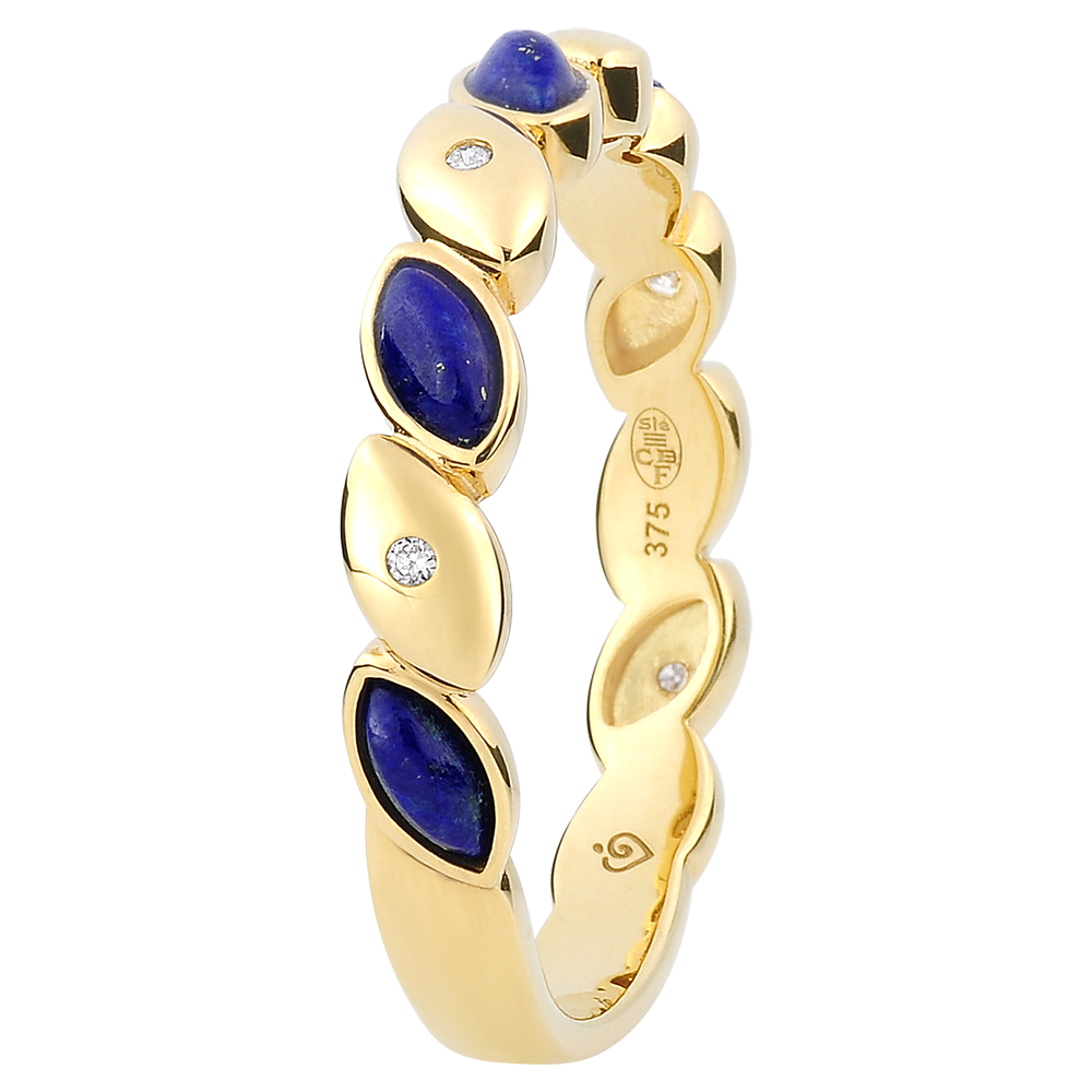 Anillo de matrimonio Felicidad - Lapis Lazulis y diamantes - oro amarillo 9 quilates