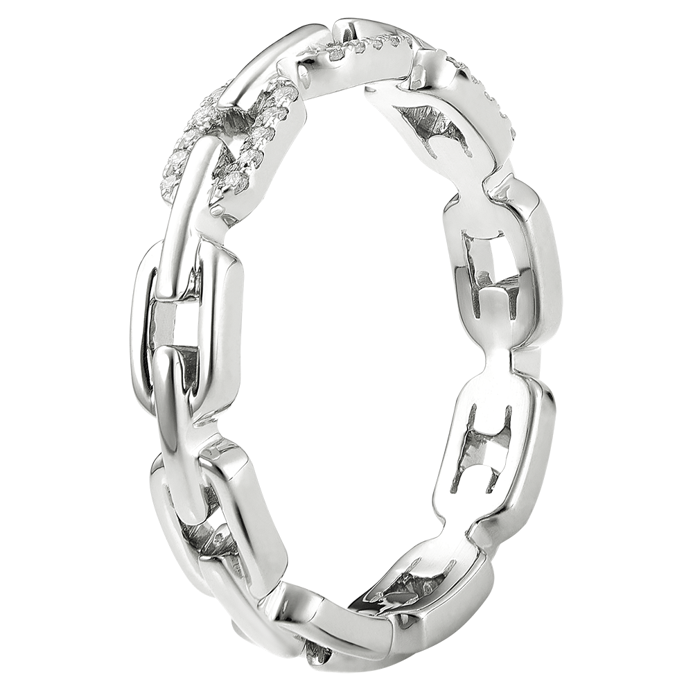 Anillo Mirada de Oriente - Eslabones Cubanos Diamants variation - oro blanco de 9 quilates y diamantes