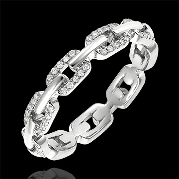 Anillo Mirada de Oriente - Eslabones Cubanos Diamants variation - oro blanco de 9 quilates y diamantes
