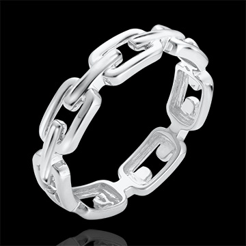 Anillo Mirada de Oriente - Eslabones Cubanos medio - oro blanco de 9 quilates