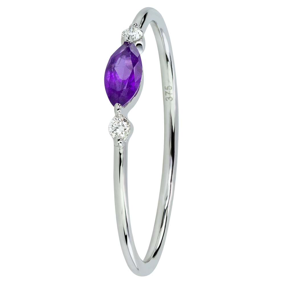 AVES DEL PARAíSO N.º 9Anillo - Oro blanco 9 quilates - Amatista, Diamante ID : 3855 4.8