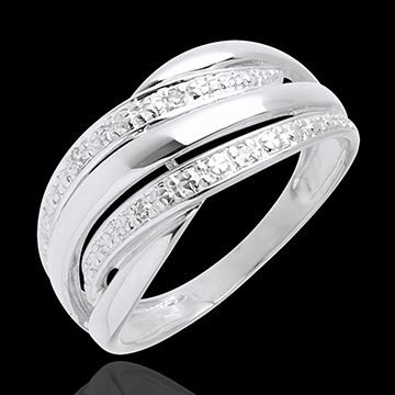 Anillo Naja - oro blanco empedrado 18 quilates y 4 diamantes