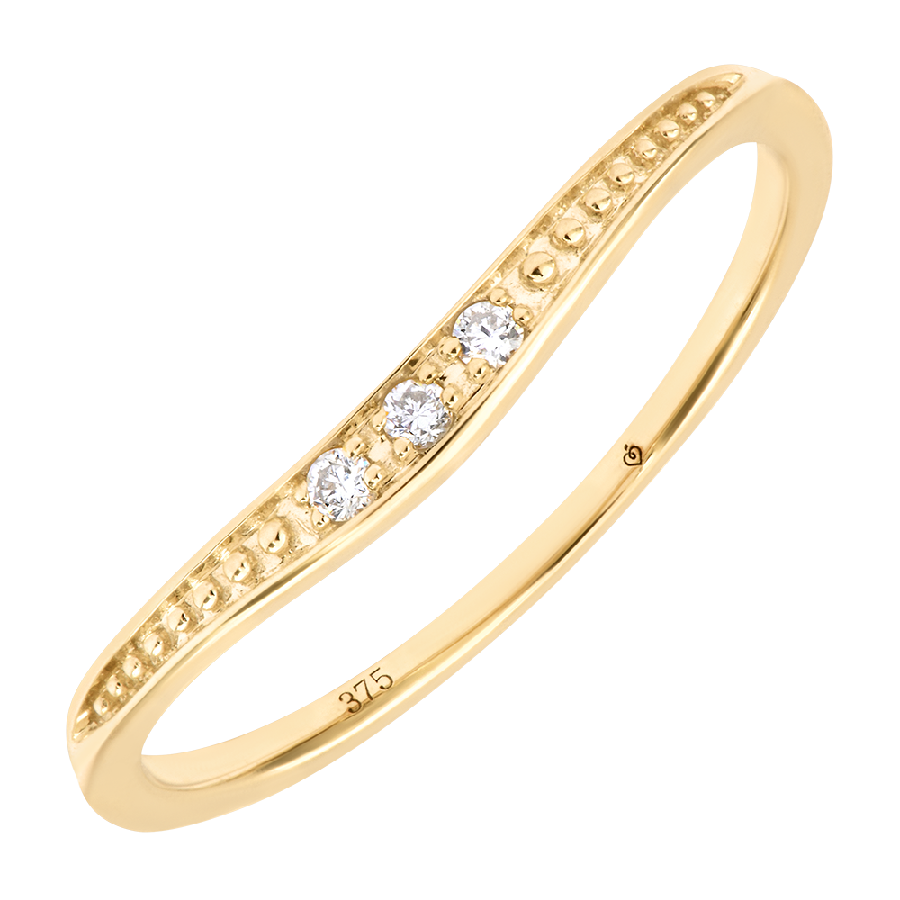 - Alianza en oro amarillo de 9 quilates con diseño fino y curvado