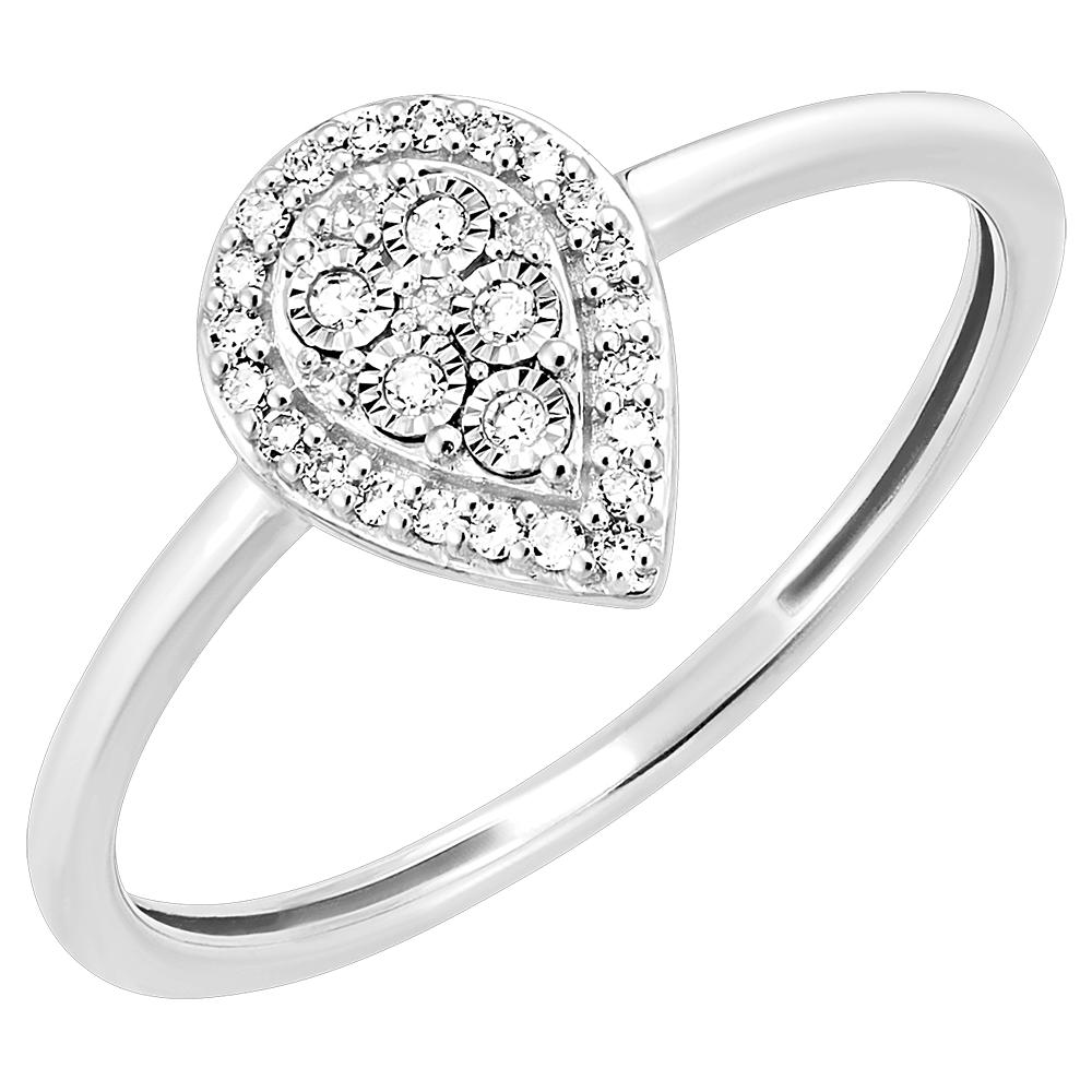 - Diseño en forma de pera con halo de diamantes para un brillo refinado