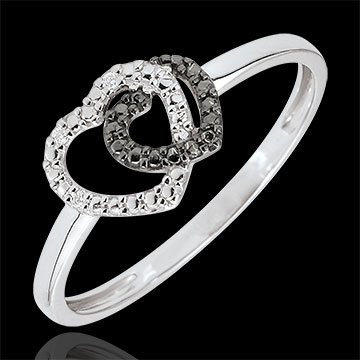 Anillo Corazones Cómplices oro blanco 9 quilates y diamantes negros
