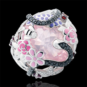 PASEO SOñADO N.º 21Anillo Serpiente - Plata maciza - Cuarzo rosa, Granate, Diamante, Diamante negro ID : 6311