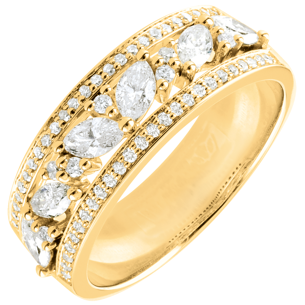 Este excepcional anillo de oro amarillo y diamantes puede ser la perfecta alianza de bodas o un regalo como recuerdo de un momento maravilloso de su vida.