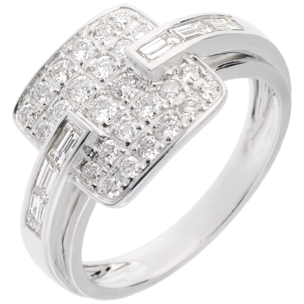 32 diamantes: 0.82 quilates - Oro blanco (18 quilates= 750/-): 5.9 g.