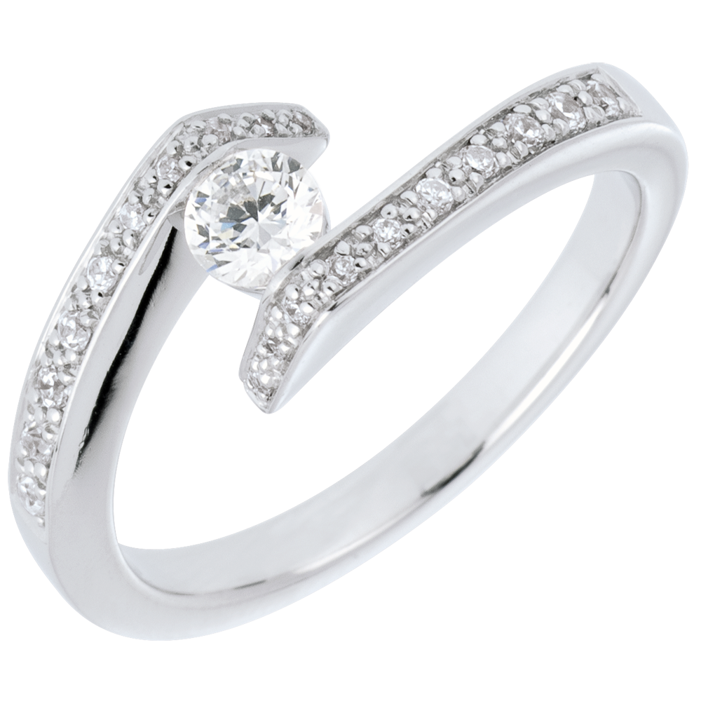 Anillo Solitario acompañado Promesa - oro blanco 18 quilates y diamante