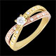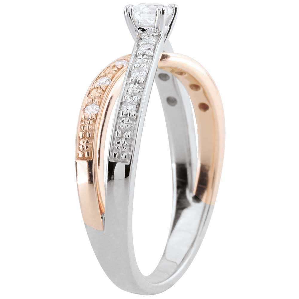 Anillo Solitario Saturno Dúo doble diamante - oro rosa y oro amarillo 18 quilates