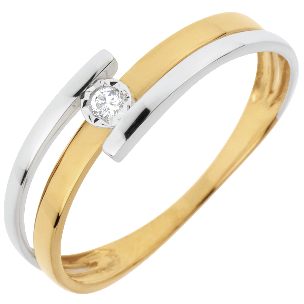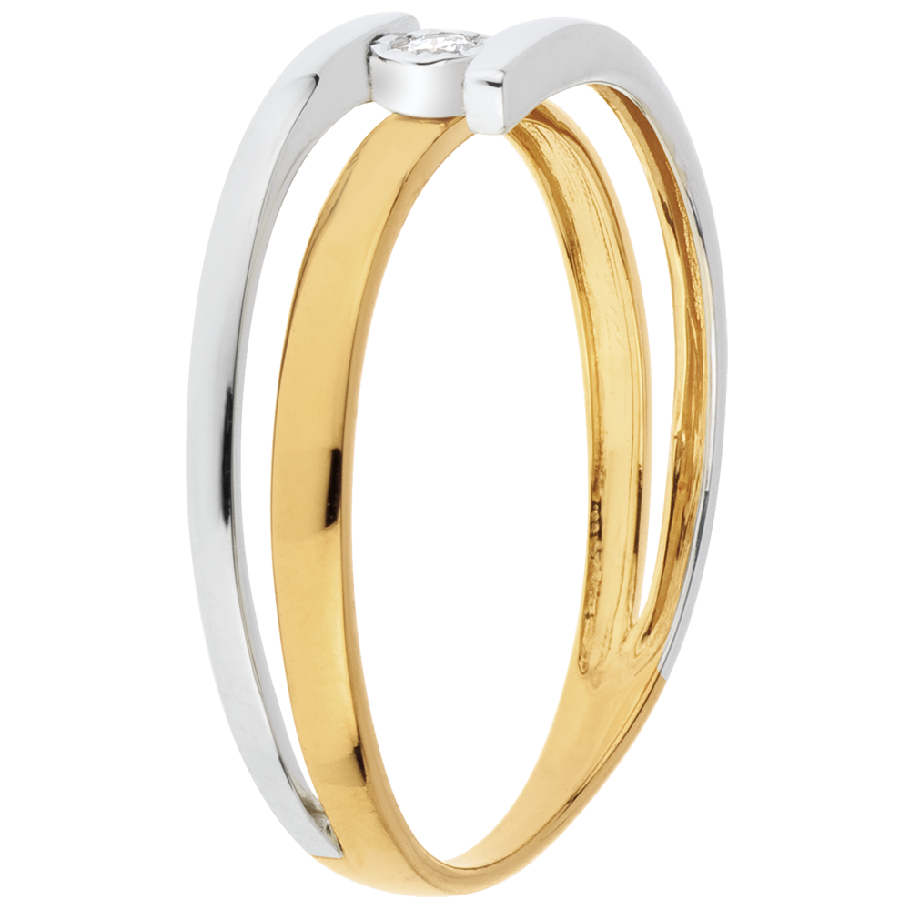 Anillo Solitario Beso - oro blanco y oro amarillo 18 quilates