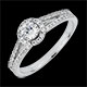 Un diamante solitario realzado por un anillo abrazado por una doble hilera de diamantes.