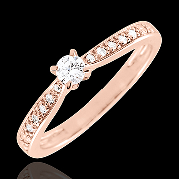 Un diamante solitario engarzado en 4 garras con una montura fina llena de diamantes.