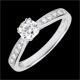 Son necesarias 8 garras para sostener este delicado diamante que protagoniza un anillo solitario acompañado de oro blanco y diamantes..