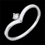 Un delicado diamante de 0,01 quilates está fijado con cuatro garras sobre una banda de oro blanco 18 quilates, moldeada como un estuche precioso.