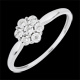 Flores y diamantes. delicadeza y elegancia.Un fino solitario con flor de diamantes sobre Oro Blanco.